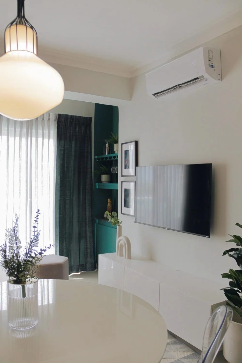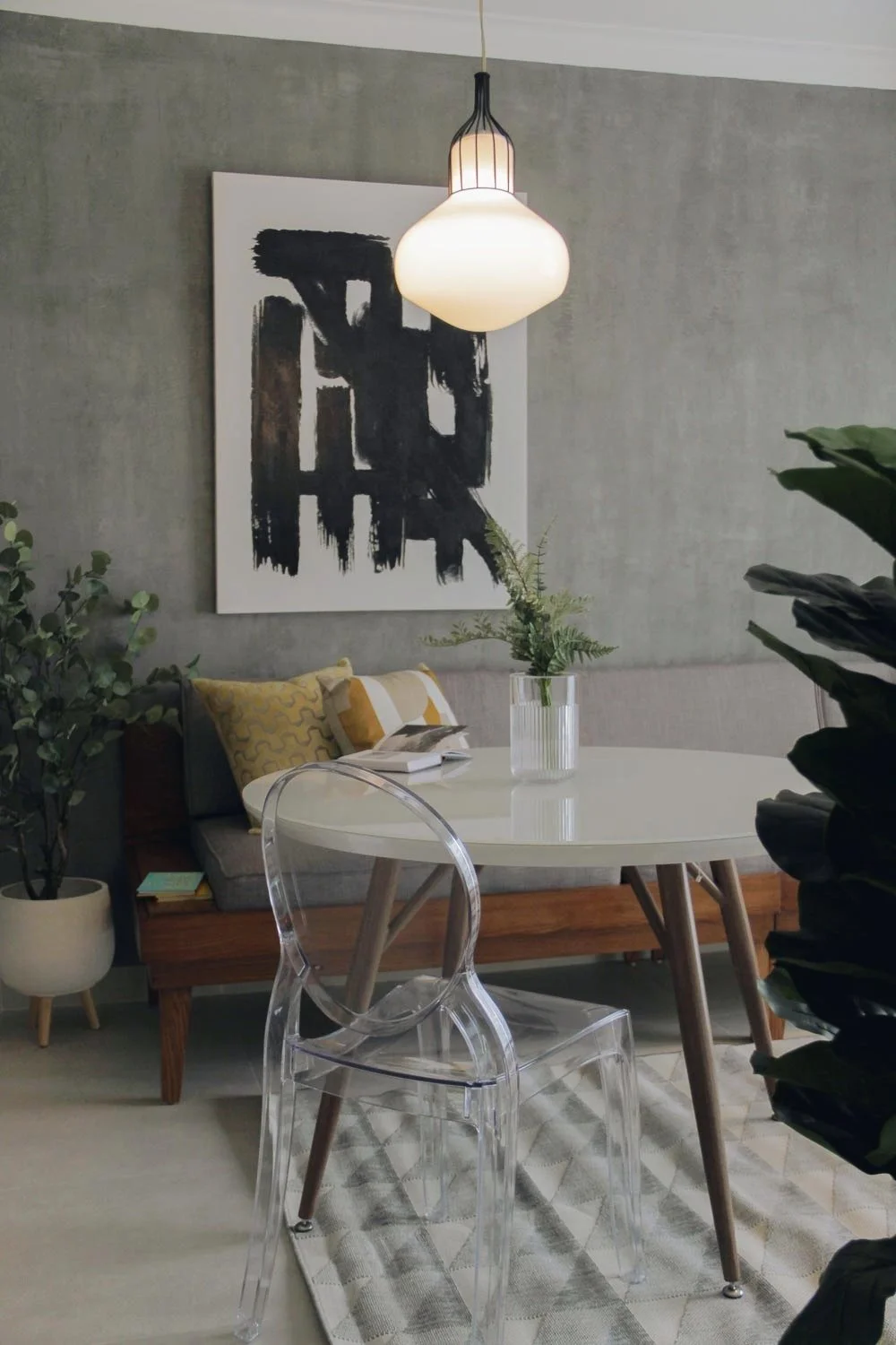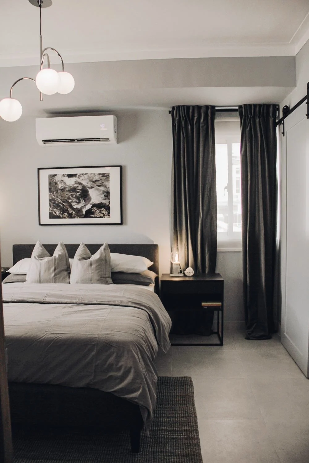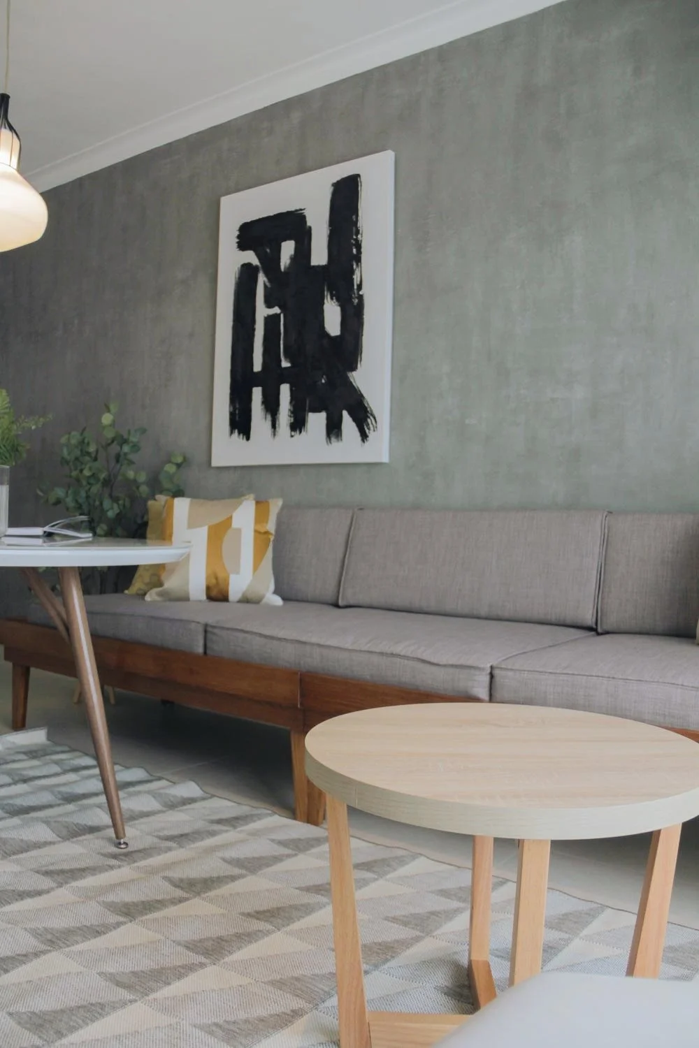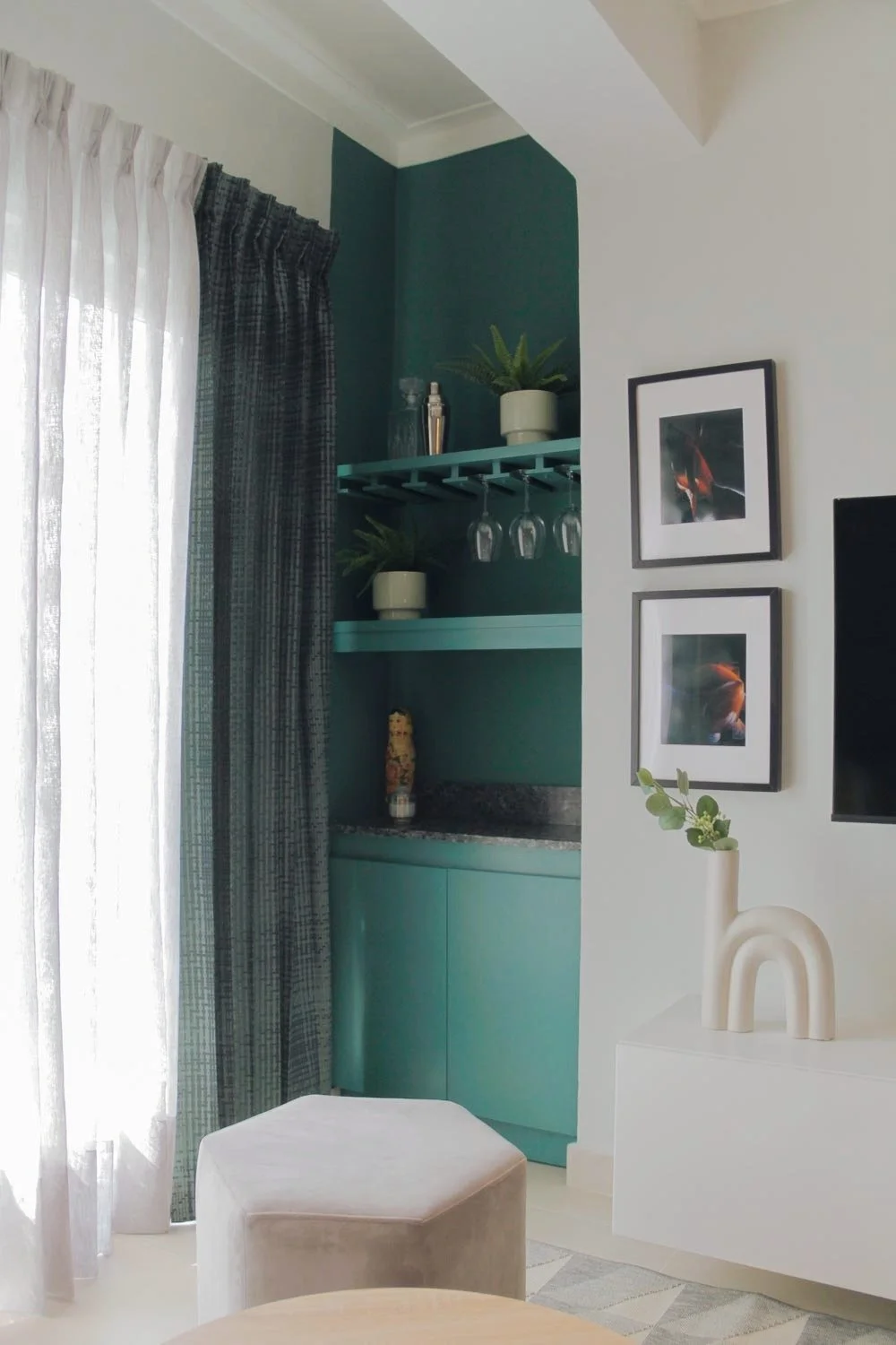 Apartamento diseñado para uso de alquiler de corta duración. Los espacios reducidos para este tipo de vivienda ameritan un mobiliario multifuncional. Con el diseño de un sofá a medida inspirado en el estilo mid-century modern, logramos aprovechar el espacio sirviendo como cama secundaria, banco de apoyo para la mesa de comedor y asientos para varias personas a la vez.