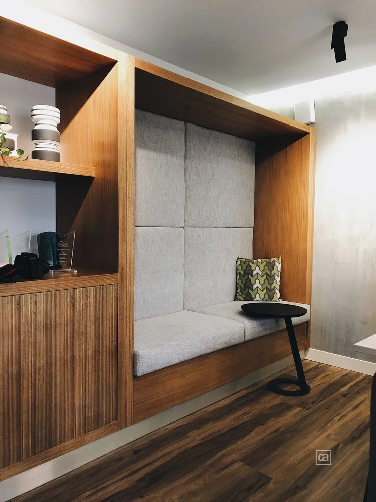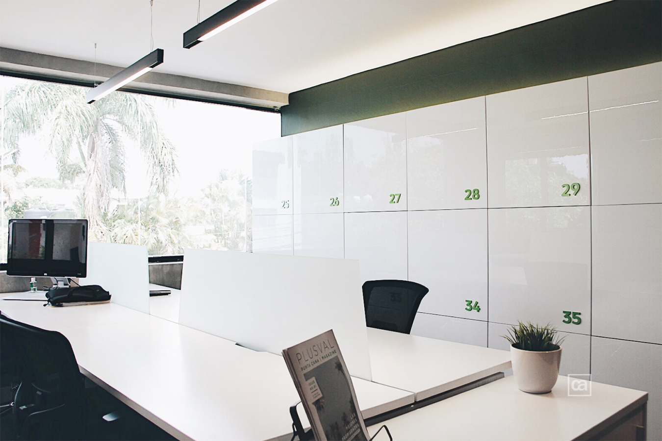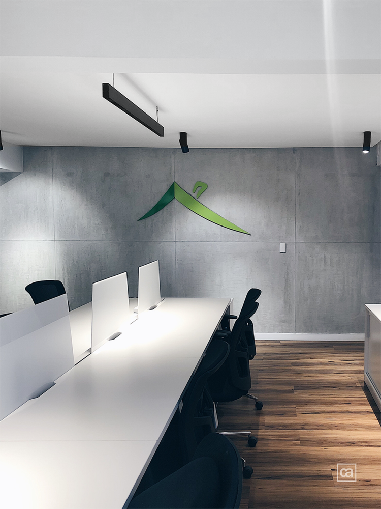 Proyecto de remodelación de casa de tres niveles para convertirla en los headquarters de una de las empresas líderes del mercado inmobiliario en Rep. Dominicana. Cuenta con tres niveles donde se distribuyen oficinas administrativas, espacios de co-working, salones de reuniones, oficinas operativas y salón de conferencias. Se trabajó al detalle la imagen de marca de interiores de la empresa a través de la selección de texturas, terminaciones y diseño de iluminación general que sirve de modelo para las demás oficinas de la misma empresa a nivel nacional. Dentro de los acápites principales que se tomaron en cuenta para el diseño se encuentra la estandarización de mobiliario de trabajo, diseño de mobiliario a medida y redistribución de espacios.